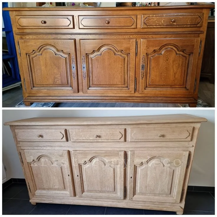 Le meuble retrouve sa teinte naturelle et peut ensuite être huilé, ciré ou peint.